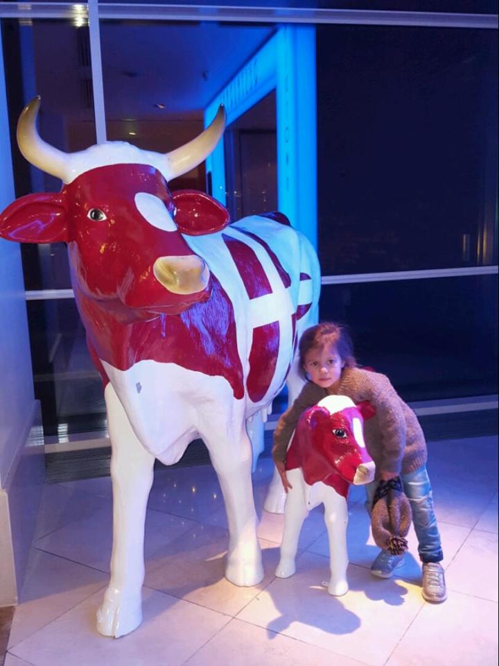 We fly out to Bergen in Norway later this morning and headed down for our final breakfast in Denmark.Emily had befriended a baby cow at the entrance to the restaurant and made sure she kissed it goodbye. We had 2 hire cars come by to take us to the airport and Ben and got to travel by ourselves in luxury.