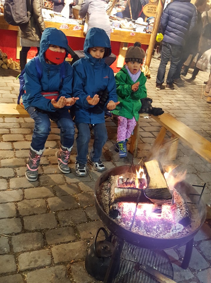 We headed to some Christmas Markets before dinner and saw some exquisite woodwork and Christmas decorations. The kids found an open fireplace and planted themselves in front to keep warm. By this point Thomas’s fingers were incredibly cold and we bought him some new mittens before heading to dinner.