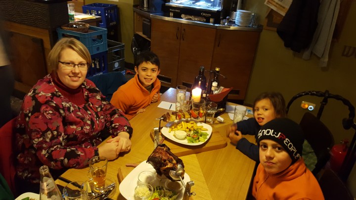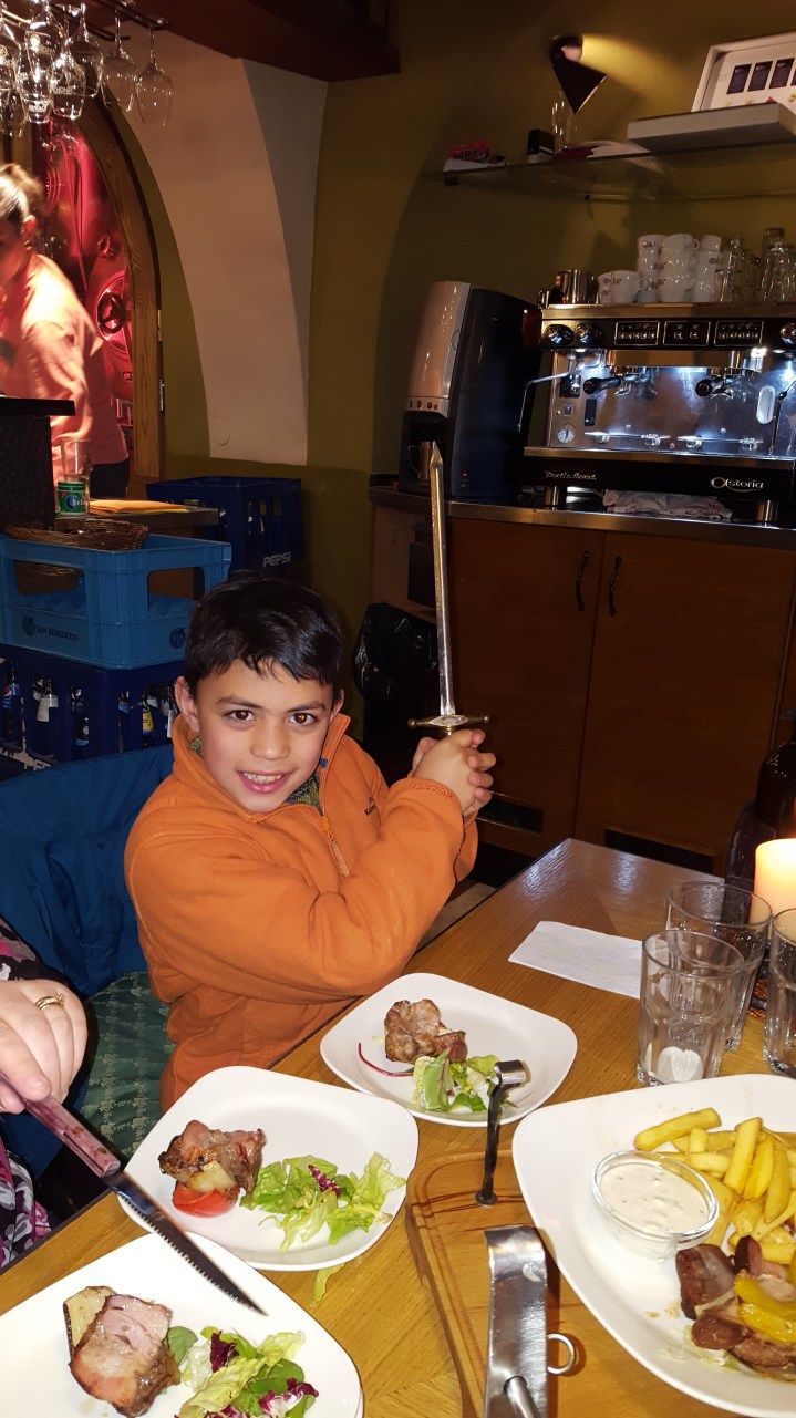 The show was interesting but a bit too long to keep the kids entertained. After the play we headed to a local Czech restaurant and ordered two very unique dishes. We had Charles IVth sword, which is basically a skewer with meat and vegetables. Except the skewer looks like a sword. We also had a side of pork which arrived on the table in a rotisserie for us to carve ourselves. The kids absolutely enjoyed the theatrics.