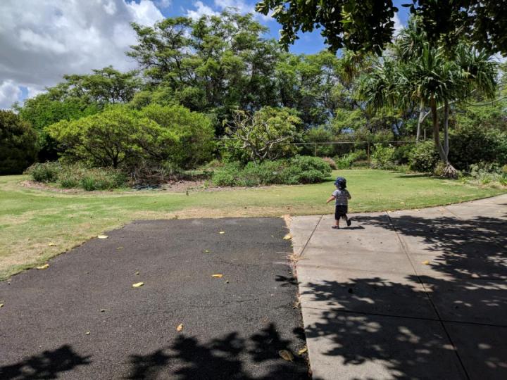 We took a taxi into the Botanical Gardens however our cab driver had never heard of it before. With help from Google maps we were able to navigate for him and as we approached the front entrance he suddenly realised what we meant. The gardens were quite small but an interesting experience. It had all the truly native Hawaiian plants. Most of the plants we see around the islands are what they call “canoe plants” as they were brought by the Tahitians on canoes. They had a number of sprinklers on at the gardens and Thomas had a great time running through all of them.