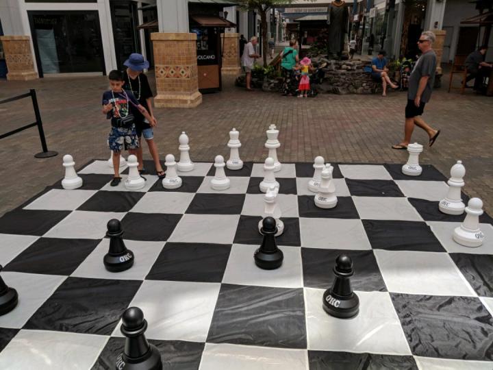 We then took a taxi to a local shopping centre to have a look around. They had a giant chess set that I played a game against Ben and Matthew. Needless to say they beat me. Meanwhile Thomas and Emily played on a ocean themed party area within the shopping mall.