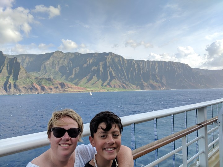 Today is our last full day on the cruise and second day in Nawiliwili. We didn’t have anything specific booked so decided to take the shuttle into a beach nearby. The water looked absolutely pristine and bluer than I have ever seen it. The waves, however, were quite brutal. The beach got pretty deep pretty quickly and the ferocity of the waves knocked us over. Ben rented a stand up paddle boat and went out into the waters while Matthew rented a snorkel set and looked at fish in the bay.