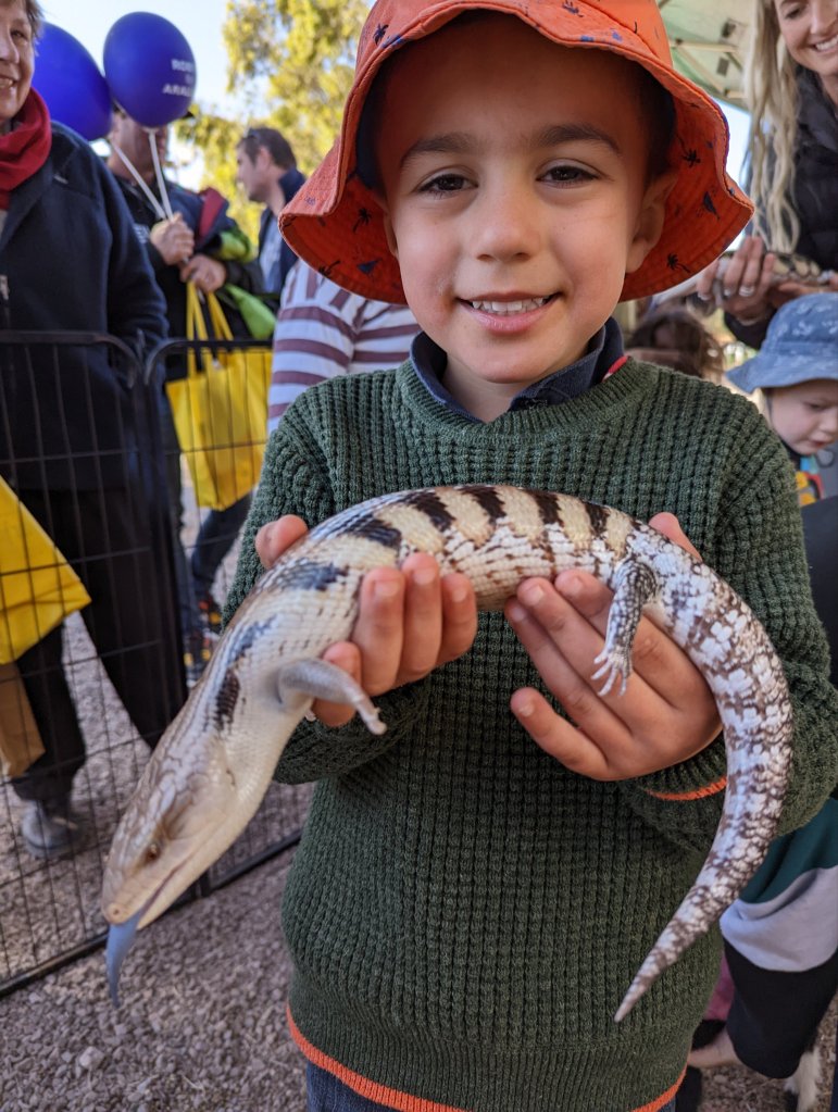 We then headed to the Alice Show and had a wander through a number of the exhibits. The art works and photography by locals – kids and adults- were quite incredible. There were also submissions for homegrown vegetables as well as baked goods. The kids were particularly excited with the petting zoo. Thomas held a blue tongued lizard while Emily cuddled a guinea pig.