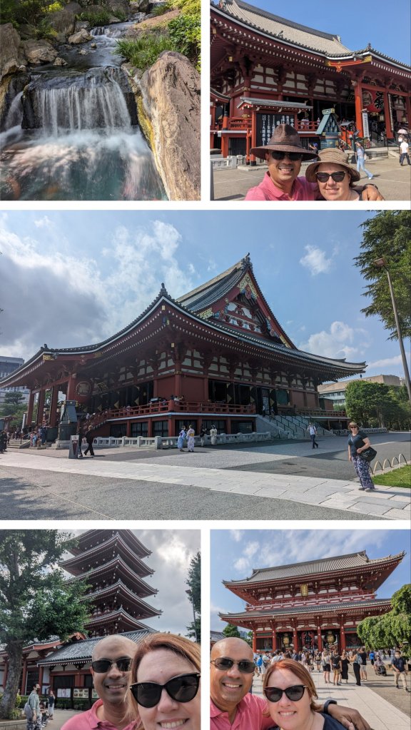 The next stop was the Asakusa Sensoji Temple. It is an active place of worship and also has the largest paper lantern in Japan. We went up into the temple but felt a bit guilty taking photos and being “touristy” around locals who were there to pray. So we walked around the grounds and in the gardens adjoining the temple. We also followed the ritual to try and have our fortune revealed. There was also a huge hawkers market with lots of souvenirs and artifacts.