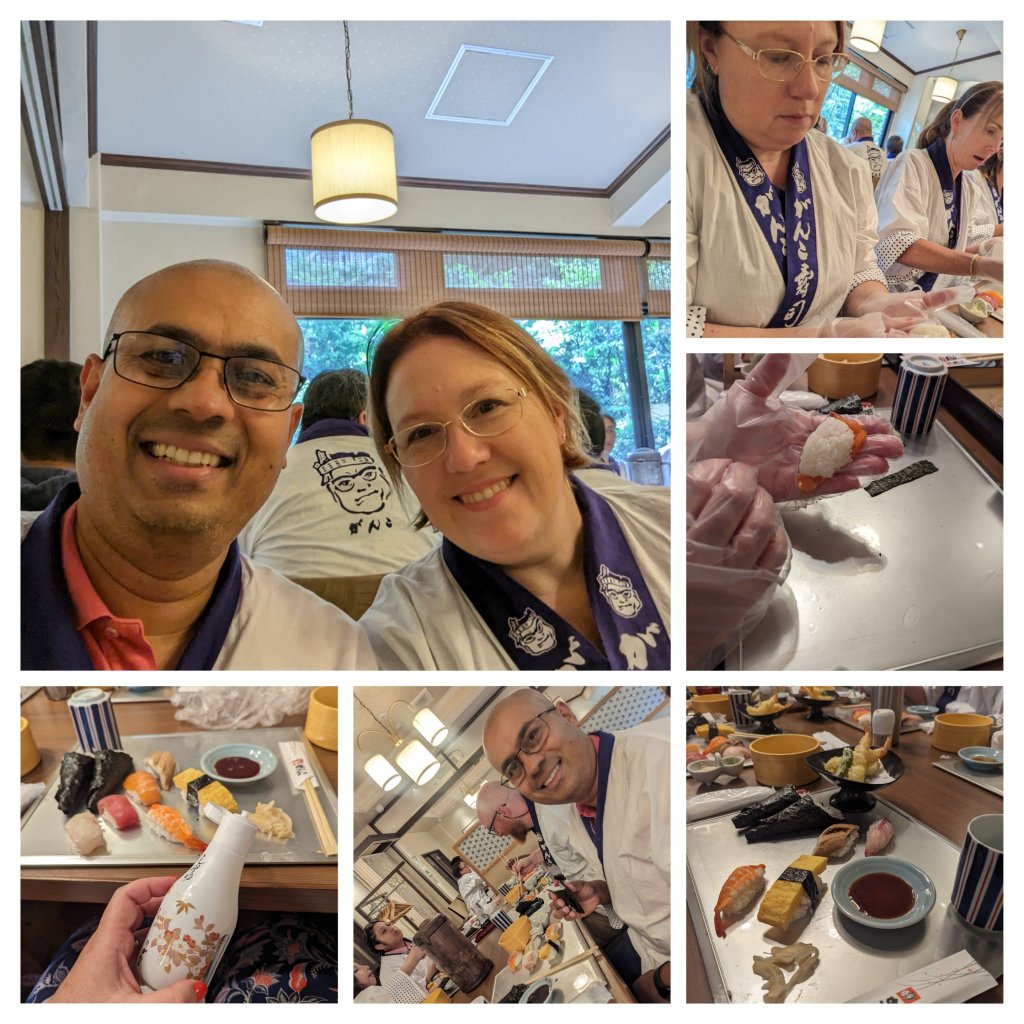 The highlight of the day was learning to make sushi. We had a sushi chef show give us tips and tricks on how to make rolls and sushi. We made a couple of large rolls and about half a dozen small sushis. These ranged from salmon, tuna, shrimp through to egg. The rice used in the sushi in Japan is not as sweet as what we get in Australia. Moreover, the amount of rice is significantly less (smaller) than the piece of fish on top – which is the other way around back home. Finally we both got certificates to prove we had completed the Sushi Making Course and were now “Sushi Masters”.