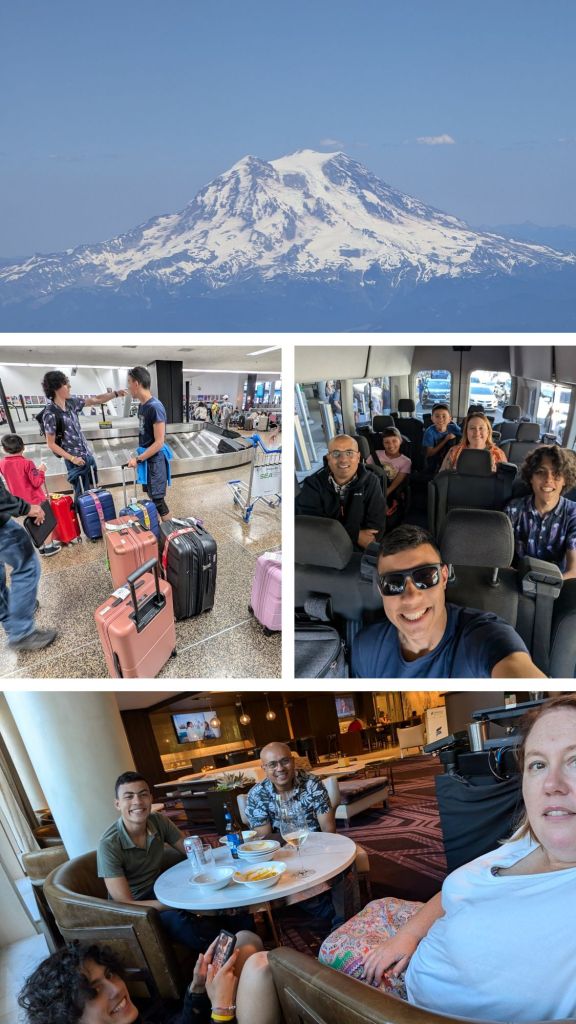 After breakfast we got picked up to take us to the airport for our flight to Seattle. The flight was uneventful and pleasant. The seats all had entertainment so the kids were able to watch movies and play games. They even had live TV so I watched CNN.